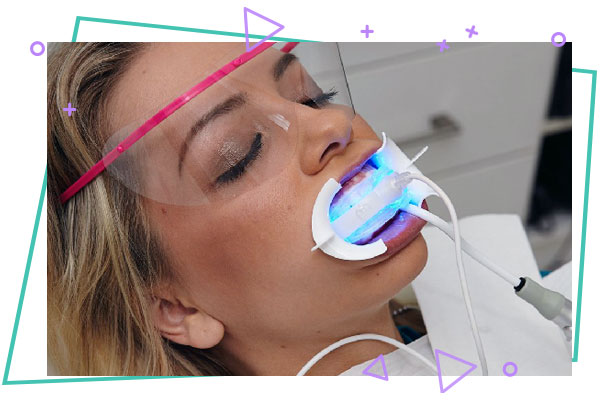 قرار دادن مواد مخصوص به مدت مشخص که معمولا ۳ پروسه ۱۵ دقیقه ای در یک جلسه روی دندان ها می باشد ، و تاباندن اشعه مخصوص روی این مواد در این مدت . اثربخشی این مواد معمولا رنگ دندان ها را ۳ تا ۴ درجه روشن تر می کند .